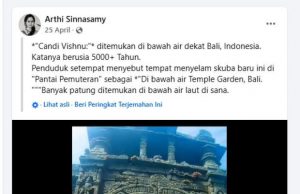 CEK FAKTA: Penemuan Candi Wisnu Berusia 5.000 Tahun di Dasar Laut...